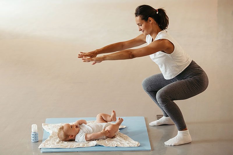 Rückbildungsgymnastik morgends mit Baby